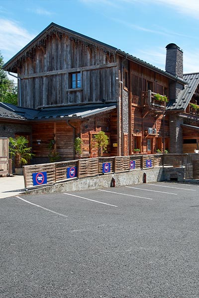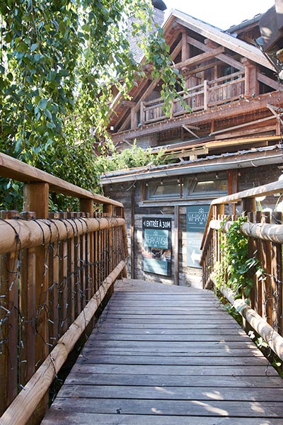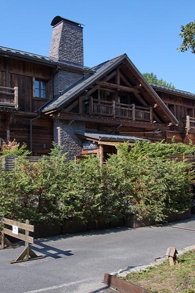 Que vous arriviez par les bords de l’Yvette côté parking ou par la belle cour pavée ancienne côté rue, l’escapade en montagne commence. Ici. Là, des ours grandeur nature taillés dans des troncs d’arbres montent la garde. De vieux skis ou des raquettes attendent d’être chaussés…